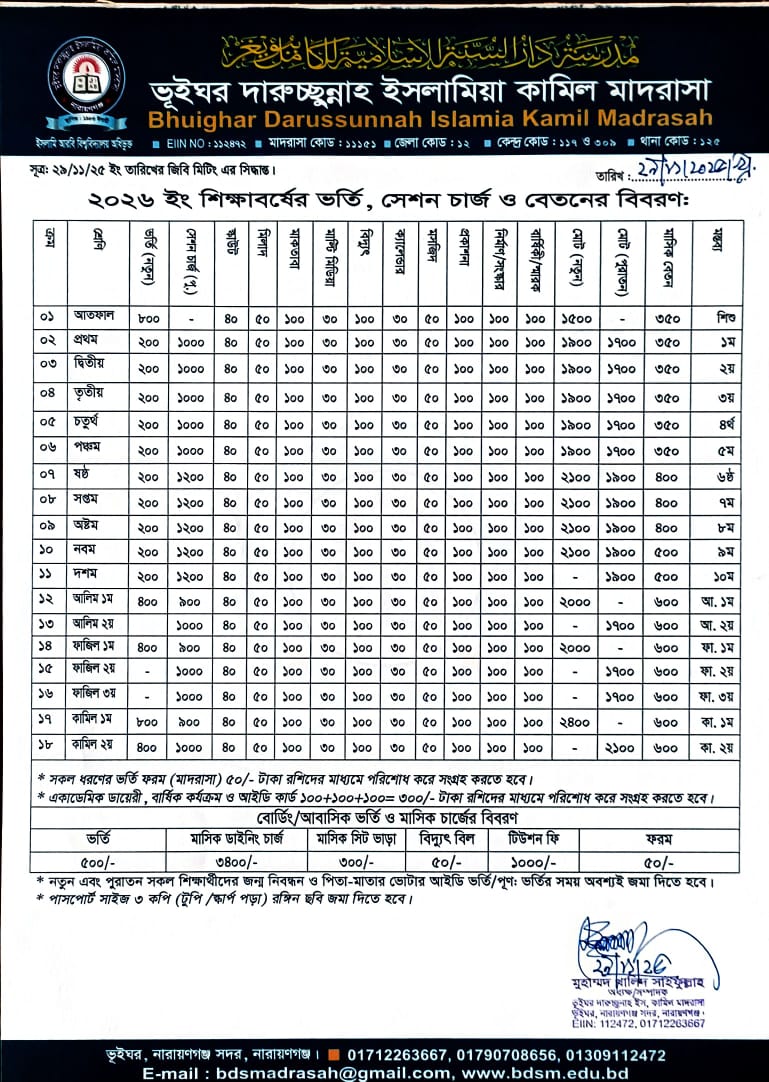 ভর্তি সেশন ও মাসিক বেতন-২৬ ২৯-১১-২০২৫